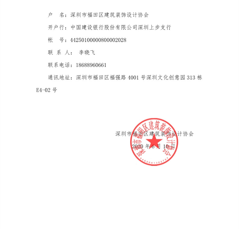 關于繳納2020年度深圳市福田區建筑裝飾設計協會會員會費的通知