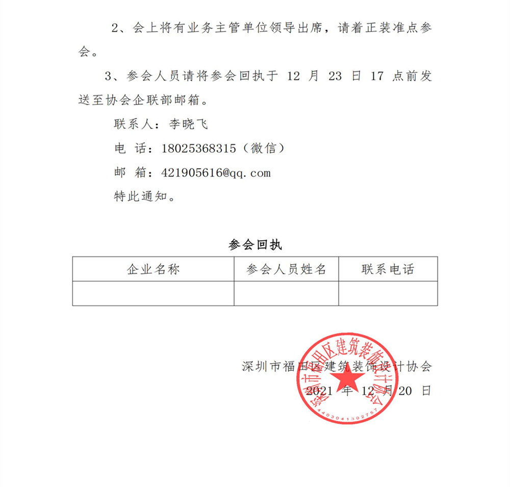 關(guān)于召開深圳市福田區(qū)建筑裝飾設(shè)計(jì)協(xié)會(huì)第五次會(huì)員代表大會(huì)暨一屆六次理事會(huì)、常務(wù)理事會(huì)的通知