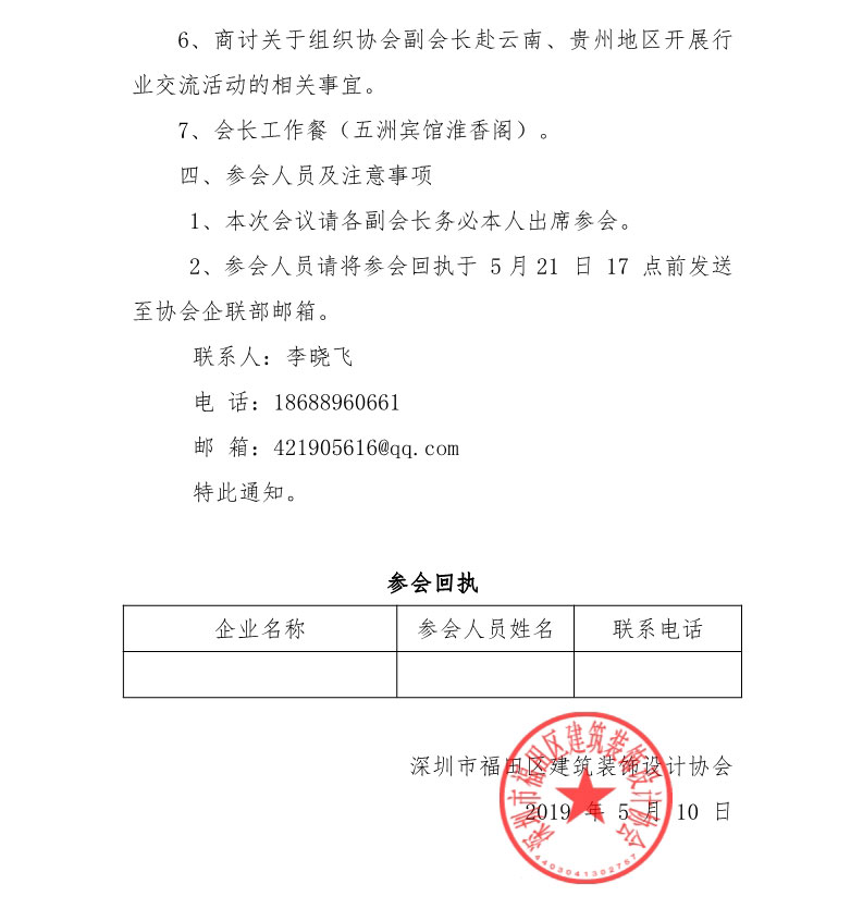 關于召開深圳市福田區建筑裝飾設計協會一屆一次會長會議的通知