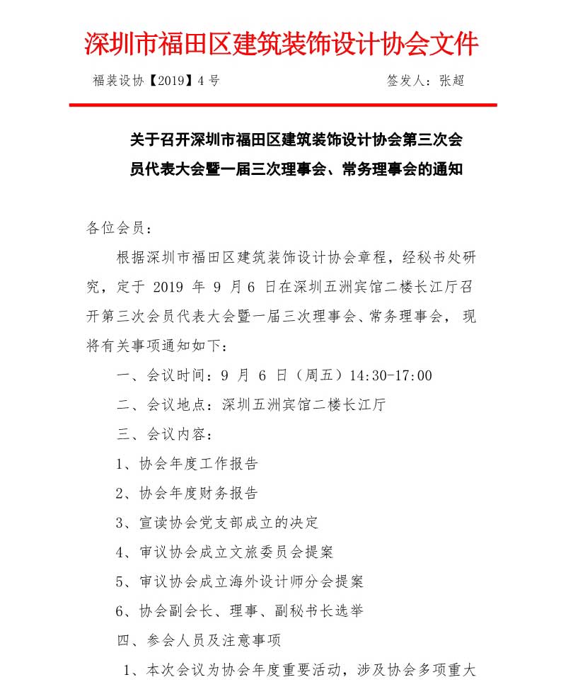 關(guān)于召開深圳市福田區(qū)建筑裝飾設(shè)計(jì)協(xié)會(huì)第三次會(huì)員代表大會(huì)暨一屆三次理事會(huì)、常務(wù)理事會(huì)的通知